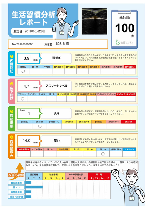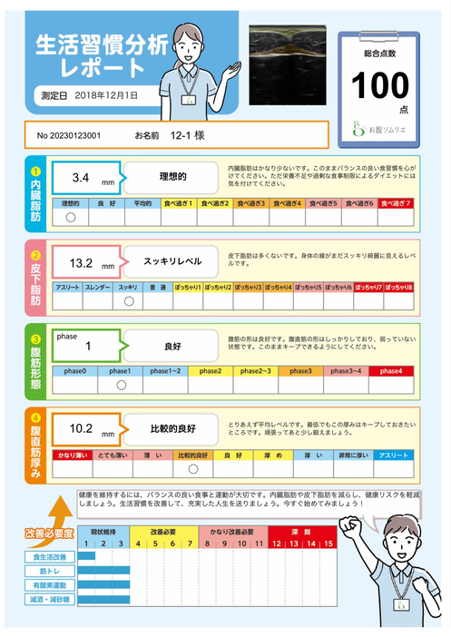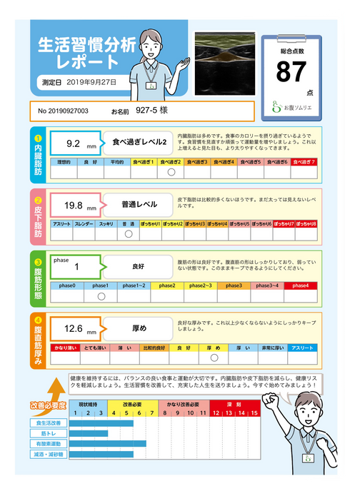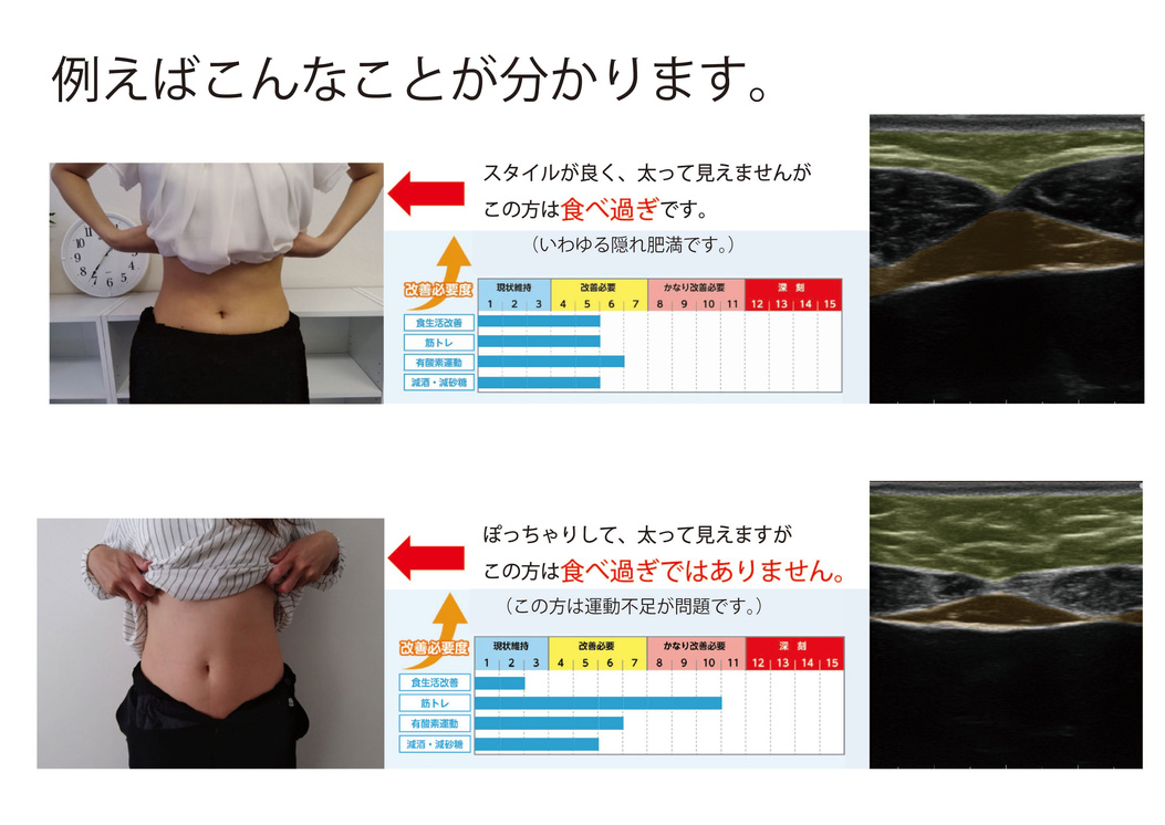 食事に気をつけるべきなのか、運動するべきなのか、見える化することでより効率的に体質の改善が可能です。
