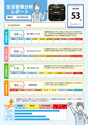 “食べ過ぎ”や“運動不足”などの実際の生活習慣の状態を客観的に評価できます。
